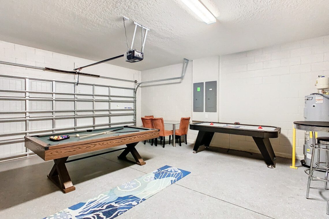 Entertainment is endless with a games room featuring air hockey and pool tables, as well as a bonus room with a foosball table. (Arcade game on second floor is currently down pending parts). Step outside to discover your own private oasis, complete with a heated pool, relaxing spa, and a covered patio for al fresco dining.