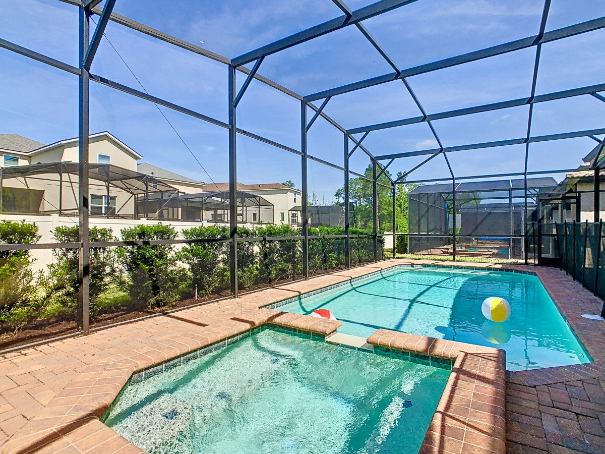 Please note that a professional pool technician visits once weekly at unannounced times for maintenance and cleaning, ensuring the pool meets safety standards. The technician enters the property from outside the home/exterior lanai and does not enter indoors.