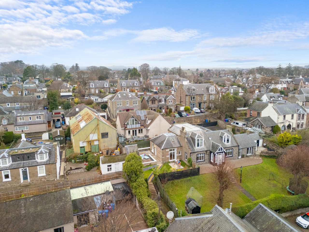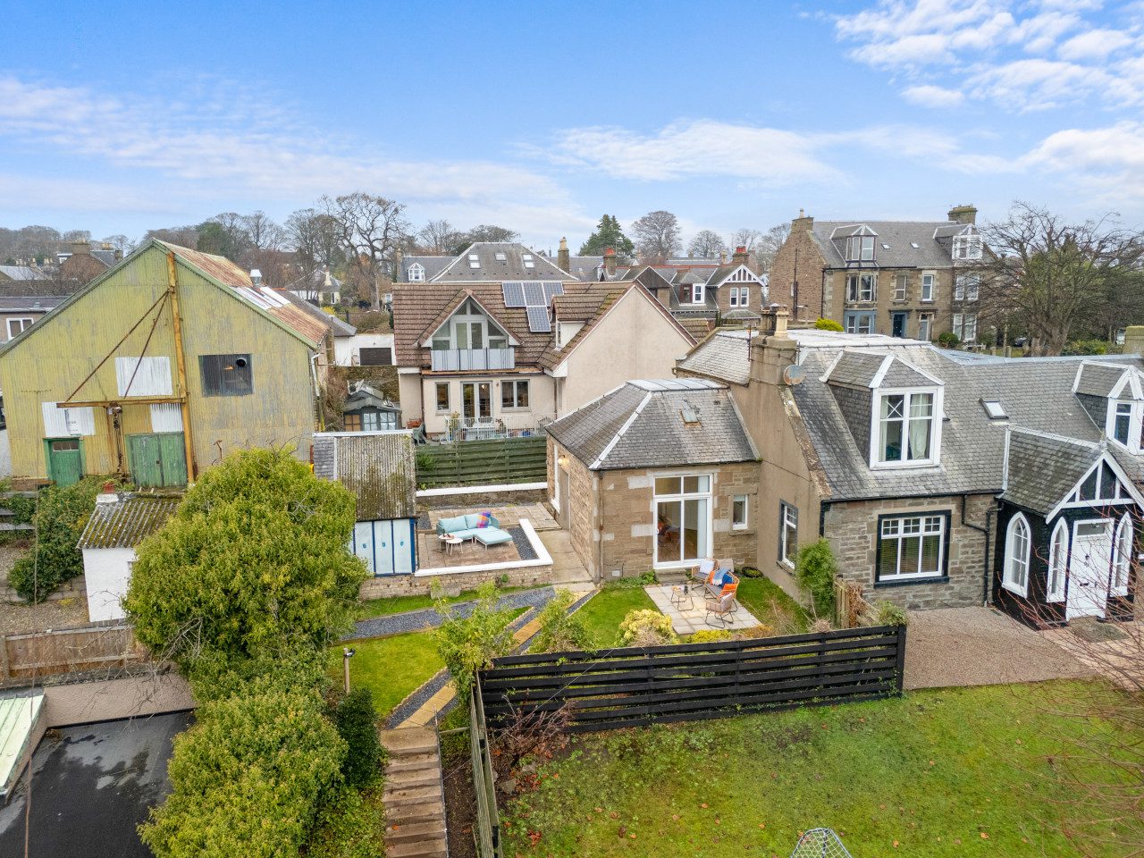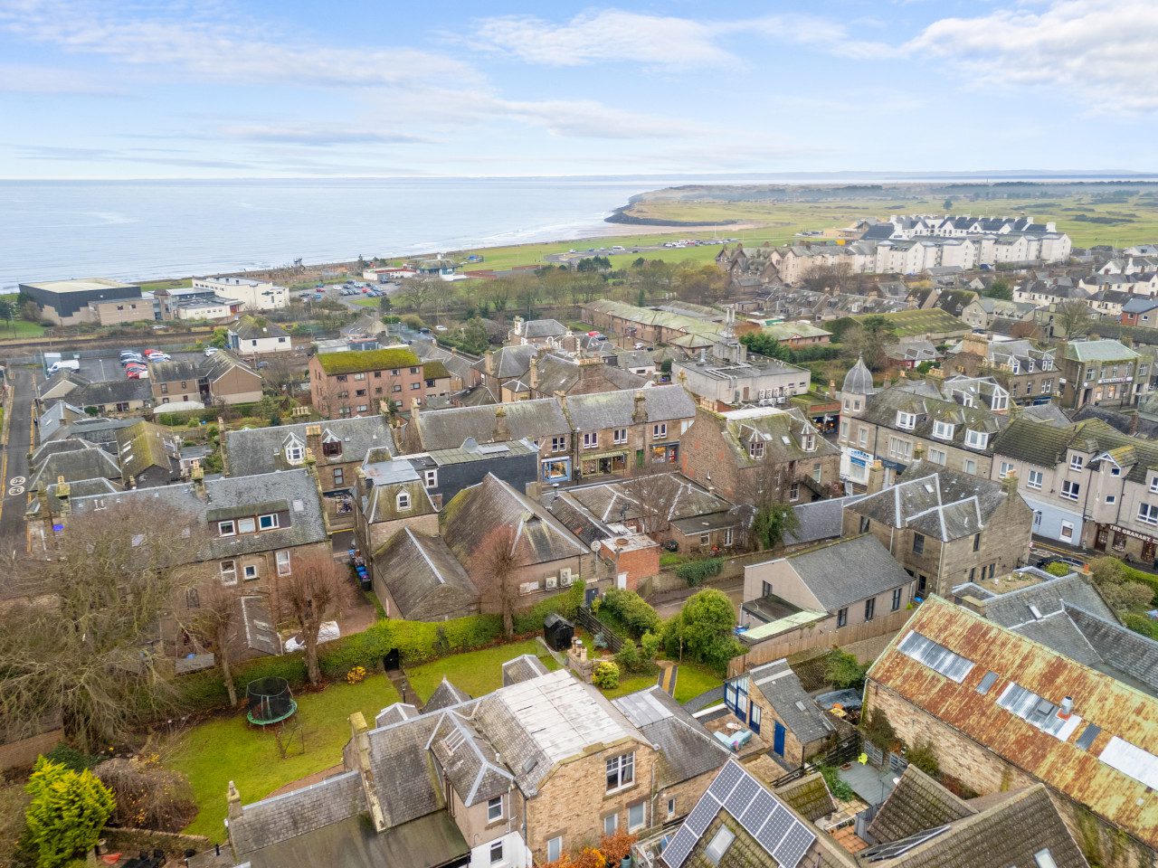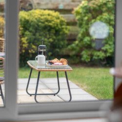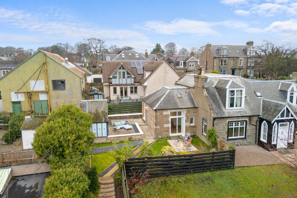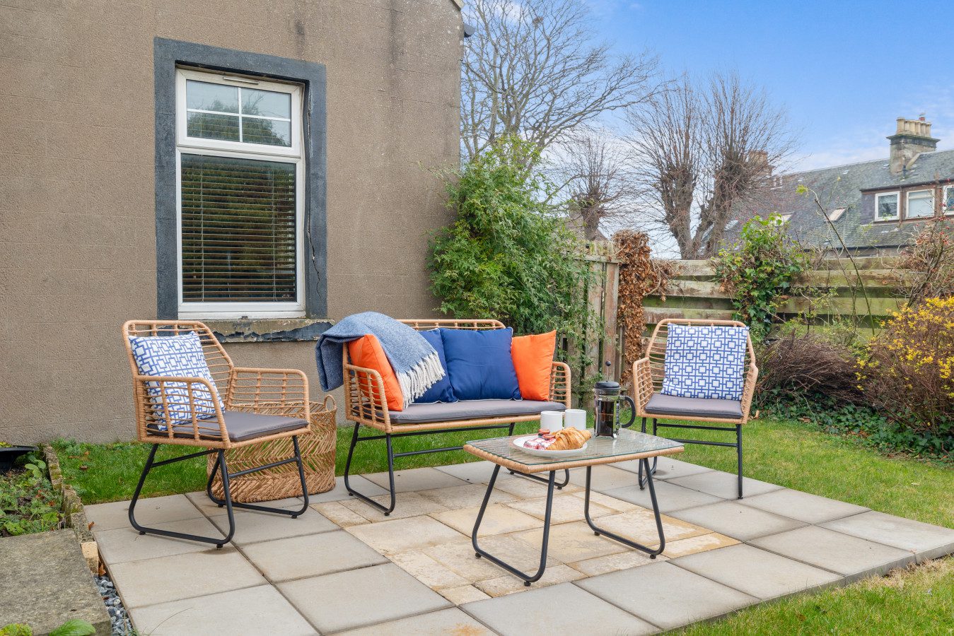 Large French doors open directly from the living space onto the garden, creating a lovely indoor–outdoor flow. When the weather is warm, this becomes one of the property’s best features. Outside, you’ll find garden furniture that makes it easy to enjoy al fresco breakfasts in the sunshine or unwind with a drink at the end of the day. In the summer months, this space truly comes into its own – private, inviting, and perfect for soaking up Carnoustie’s fresh coastal air.