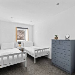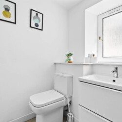 The cottage sleeps four guests across two inviting bedrooms: one double and one twin, both offering glimpses of the sea over the rooftops. The sleek shower room features a walk-in rainfall shower and underfloor heating, ideal for warming up after windswept walks on the beach.