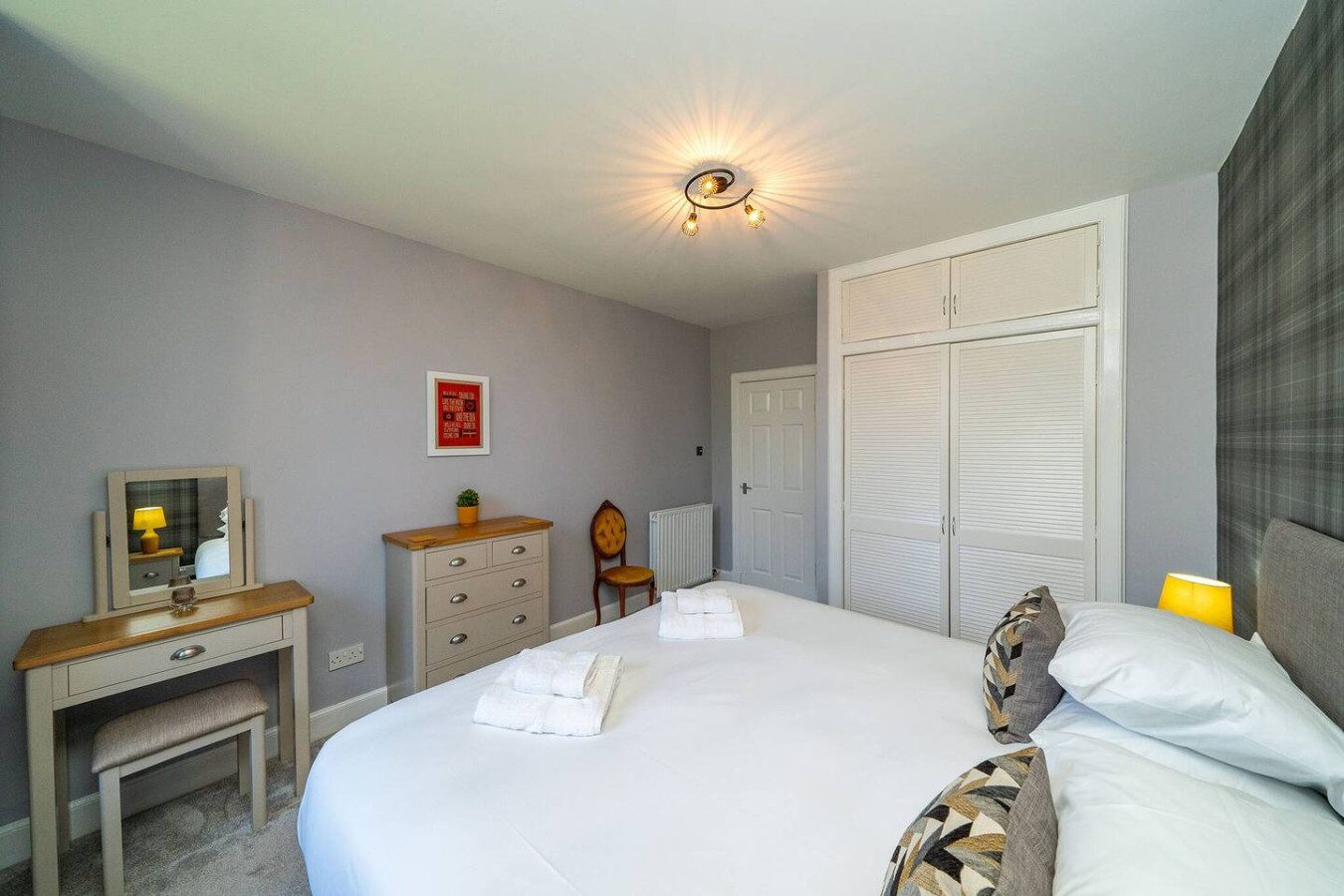 Guests love the Scottish touches in this beautifully styled, two-bedroom apartment. From dramatic and tasteful tartans to fun cartoons and artworks adorning the walls, there’s lots to smile about here. The location is great too: you are close to the excellent facilities at Dundee International Sports Centre (disc) and the Regional Performance Centre. You’re also well placed for both the city’s Universities, the main road network and all the notable sights in this invigorating coastal city.The spaceThis apartment is conveniently located on the ground floor and features two double bedrooms. One room has a king-sized bed which can be split into 2 single beds, giving great flexibility. The modern fully equipped kitchen has a breakfast bar with seating for two. The lounge is bright and spacious, and very tastefully furnished. The bathroom features a bath with over bath shower. On street parking is available.Key Features 2 double bedrooms – one with king size bed which can split into 2 singlesFully equipped modern kitchenBright, spacious lounge with tasteful furnishingsOn street parking availableEasy access to city centre and attractions Scottish touches to the décorLocationDundee has transformed in recent years into a lively and cosmopolitan coastal city. With many exciting commercial and cultural attractions, it has become a favourite for city breaks. It’s also an urban wanderer’s delight and the proximity of the apartment to key attractions is a major bonus.Public transport links are very good with the main bus and rail stations not far away from the apartment. The domestic airport is a short drive away with direct flights to London and Belfast. Driving is easy with a good road network in the city and beyond. Welcome to our Cleppie apartment and have a fantastic stay!