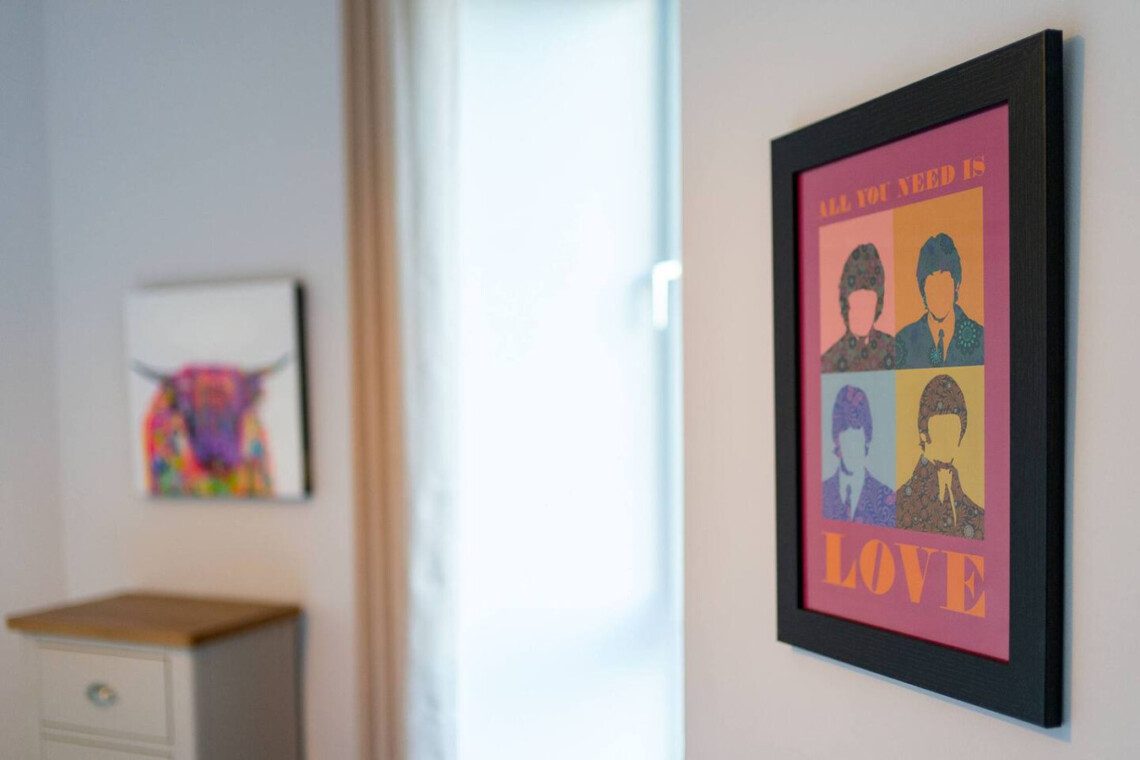 Guests love the Scottish touches in this beautifully styled, two-bedroom apartment. From dramatic and tasteful tartans to fun cartoons and artworks adorning the walls, there’s lots to smile about here. The location is great too: you are close to the excellent facilities at Dundee International Sports Centre (disc) and the Regional Performance Centre. You’re also well placed for both the city’s Universities, the main road network and all the notable sights in this invigorating coastal city.