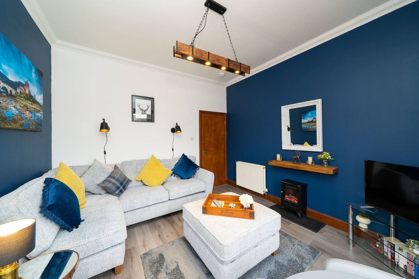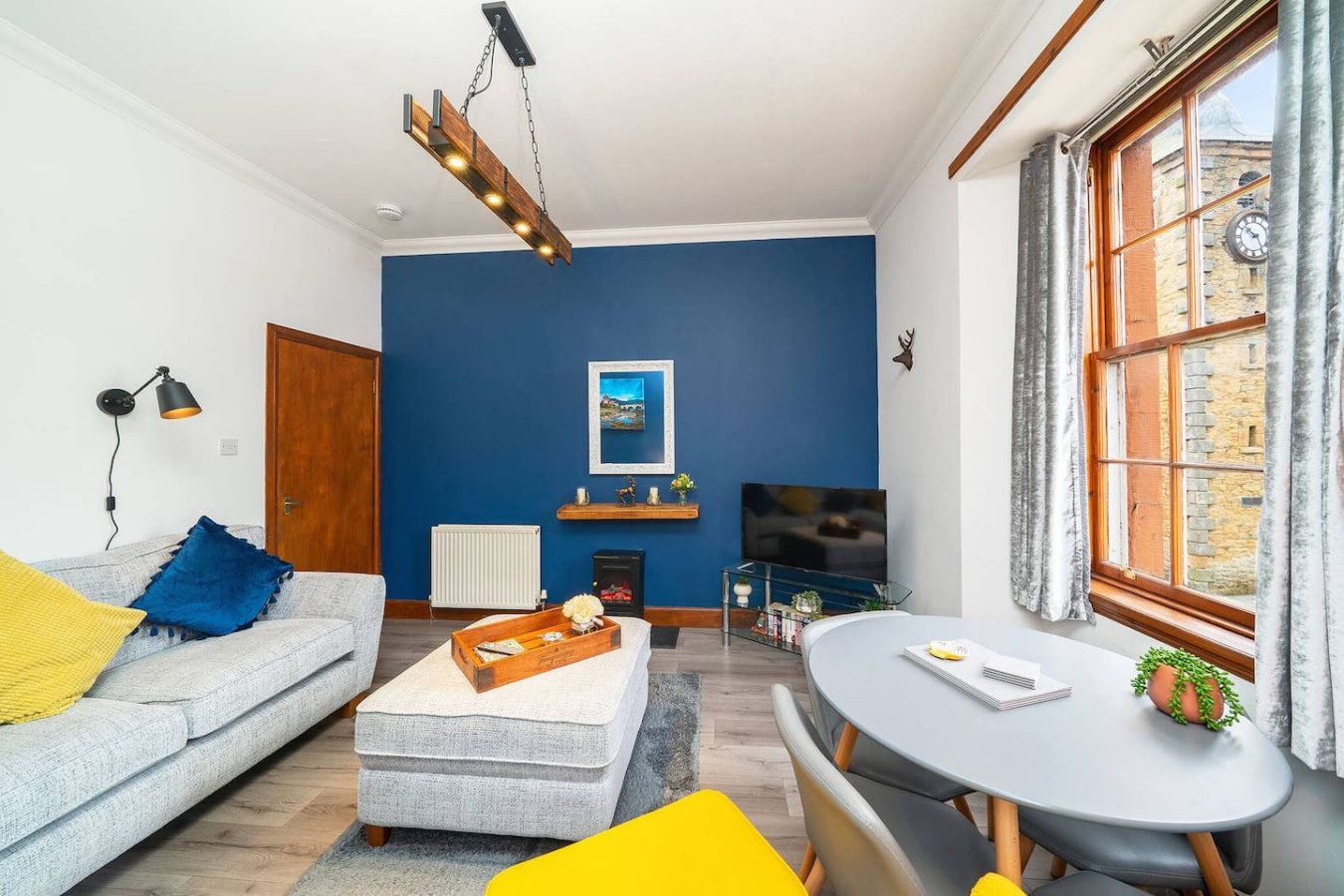 Located in the quiet village of Clackmannan in the heart of Scotland’s central belt, this two-bedroom flat is all about location. You couldn’t ask for a more perfect base for a holiday or working trip: the historic city of Stirling is just 20 minutes away, and both the bustling cities of Edinburgh and Glasgow as well as the bonny banks of Loch Lomond and the Trossachs National Park are all within an hours drive.The Tollbooth is located in the centre of Clackmannan, overlooking the historic Tollbooth. It is a traditional upper flat with a bright and modern interior. The flat has recently been updated throughout, including a new fully equipped kitchen. The stylish lounge includes a large l-shaped couch perfect for relaxing at the end of the day with a glass of wine in front of the television. There’s also a comfy armchair ready for curling up with a good boo, plus a dining table that seats four. Down the hall, there are two bright and freshly-decorated bedrooms (1 double, 1 single + trundle), as well as a modern main bathroom with a shower over the bath.Key Features 2 bedrooms – 1 with double bed, 1 with single bed + trundleNew and fully-equipped kitchenModern main bathroom with a shower over the bathBright and spacious lounge.Dining table that seats 4Quiet town location with free on-street parkingLocationClackmannan is known for its connections to Robert The Bruce and it’s an easy walk from The Tollhouse to the historic Clackmannan Tower. The town itself has takeaway options or it’s a 7-minute drive to the larger town of Alloa with a wide selection of restaurants and shops.Take a day trip to the big cities of Edinburgh and Glasgow – they’re both within an hour’s drive, and you can also catch the train to Glasgow or Stirling from Alloa. There are loads of local attractions to visit too, with Stirling Castle, the Wallace Monument, The Falkirk Wheel and The Kelpies all within a half-hour drive. If you’re a keen walker, the majestic Ochil Hills are on your doorstep and offer stunning views over the region.Welcome to The Tollbooth, enjoy your stay!