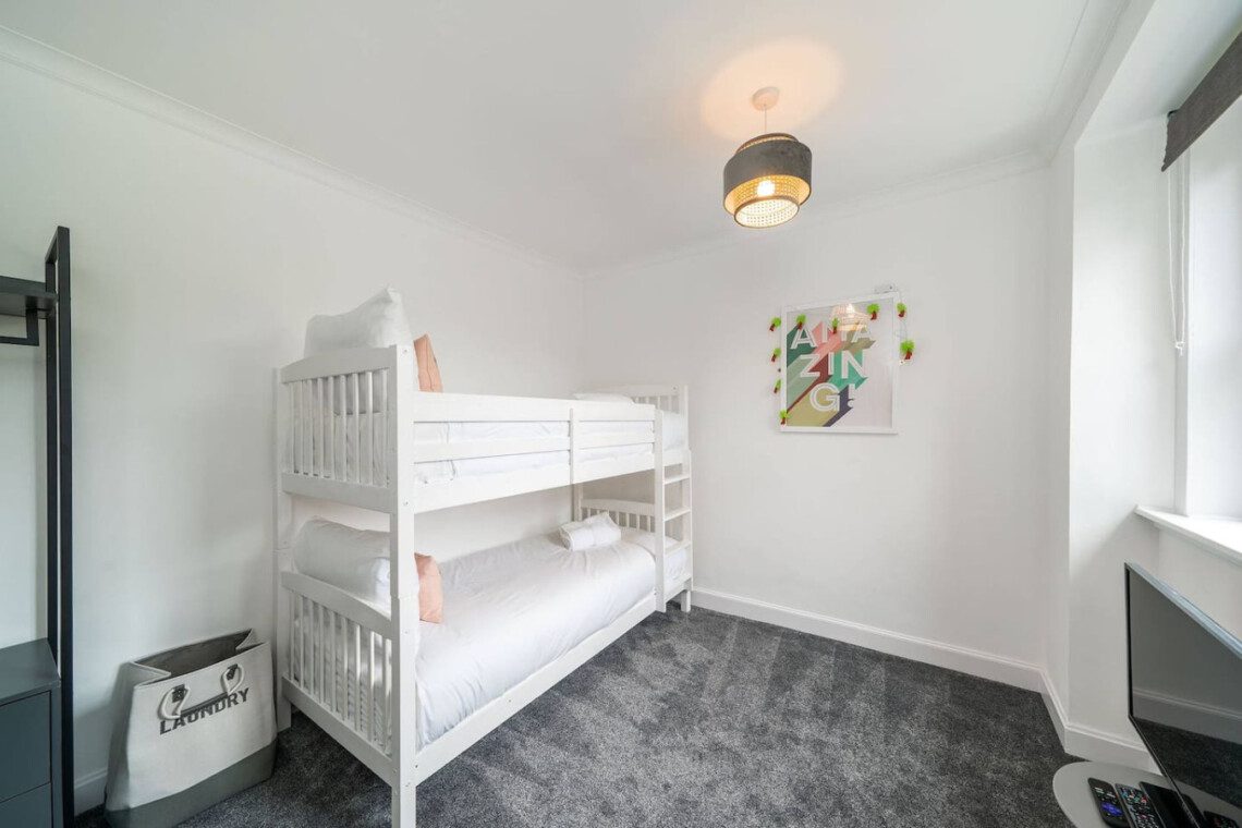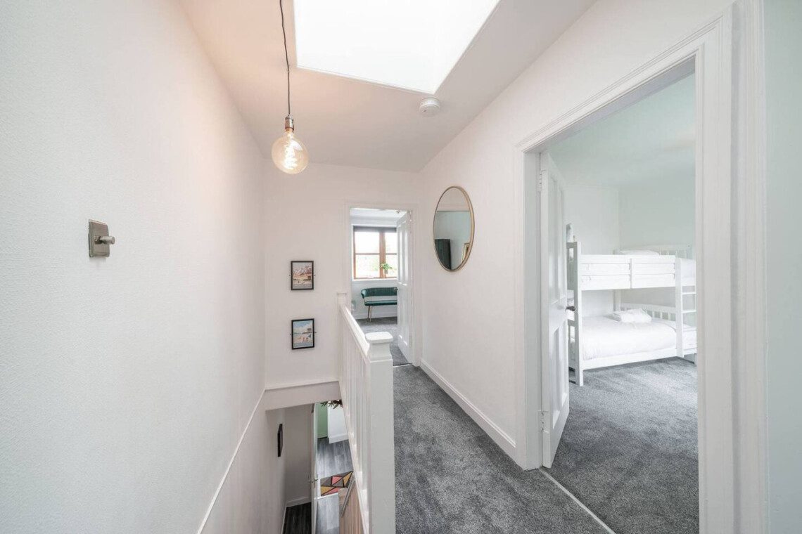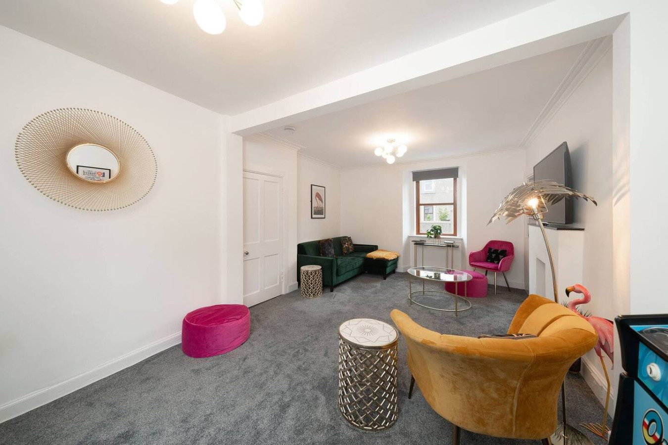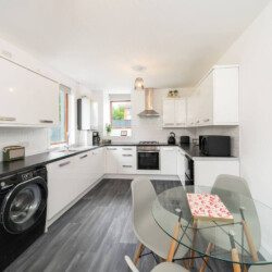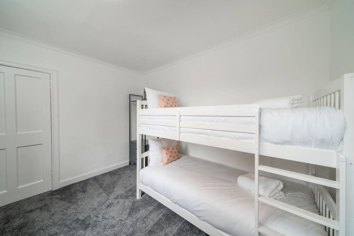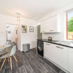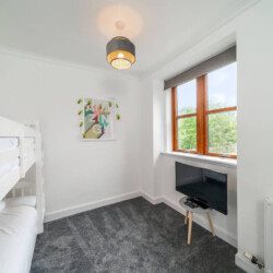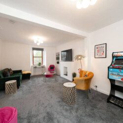 With eclectic style, loads of space and a winning location, The Palm at the Ferry has it all! This traditional semi-detached villa is situated right in the heart of the ever-popular seaside village of Broughty Ferry. In just a few minutes you can stroll down to the beautiful beach, wander to lunch or a drink at the fabulous local bars and cafes, or zip to the train station to explore further. It’s all on your doorstep with The Palm at the Ferry!Open the welcoming sage green door of this traditional semi-villa and you’ll step into a modern oasis. The large and bright open living space is decorated with tropical flair. The lush carpets, sumptuous green velvet sofa, palm leaf lamp shade and gold velvet armchair all invite you to chill out with a cocktail, or to kick back with a film on the large screen television. There’s even a full-size arcade machine where you can battle it out with your friends and family!The fully equipped modern kitchen is a beauty too, with glossy white cabinets, new appliances and a dining table that seats four. From here you can head outside to the large enclosed rear garden, with plenty of grass for kids to romp around, and a lovely seating area complete with table and chairs perfect for an al-fresco breakfast or an evening drink.Back inside, heading up the stairs you’ll find three full-sized double bedrooms – 2 with double beds, 1 with a bunk bed – all spacious with fun and glam touches of gold and bold colour. There’s also a spacious family bathroom with a shower over the bath, with fabulously quirky wallpaper. Key Features ● Excellent location in the heart of popular Broughty Ferry, just 4 miles from Dundee● 3 modern bedrooms – 2 x double, 1 with bunk beds● Bright, modern and spacious lounge with full size arcade machine● Dining table that seats 4● Spacious main bathroom with shower over bath● Fully-equipped modern kitchen● Large fully enclosed garden with outdoor seating● Complimentary on-street parkingLocationWith a plethora of excellent local cafes, shops and bars as well as a gorgeous golden beach, it’s easy to see why the seaside village of Broughty Ferry is so popular. It was home to millionaire barons during the height of Dundee’s jute industry, and it retains its high reputation as “The Jewel in Dundee’s Crown” today. You can soak up the history at Broughty Castle, which dates back to 1490, or simply enjoy a stroll on the beach.With excellent air, road and rail links, Broughty Ferry is a superb base for exploring Dundee and the delights of the Angus region. Take a hike in the hills of the Angus Glens or potter around historic villages like Kirriemuir, the birthplace of Peter Pan author Jm Barrie. Broughty Ferry is a great base for golfers too, with the famous courses at Carnoustie, Montrose and St Andrews all within an easy drive.If you want to go car-free, The Palm at the Ferry is just a four-minute walk to Broughty Ferry train station where you can catch a train into Dundee (only four miles away) and check out V&a Museum, Science Centre and loads of other attractions. You can also venture further afield by train to the bigger cities of Edinburgh, Glasgow or Aberdeen. Welcome to The Palm at the Ferry, enjoy your stay!We just wanted to give you a heads up; this cottage is quite near the train line. Previous guests have all advised this didn’t affect their stay at all but we believe it’s fair to mention this beforehand.