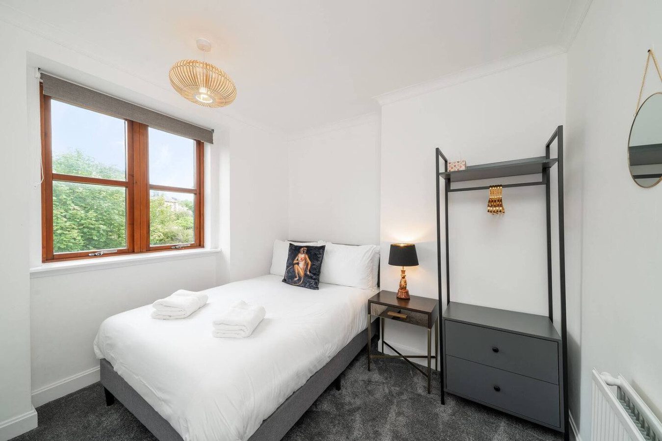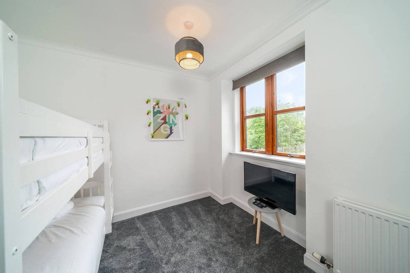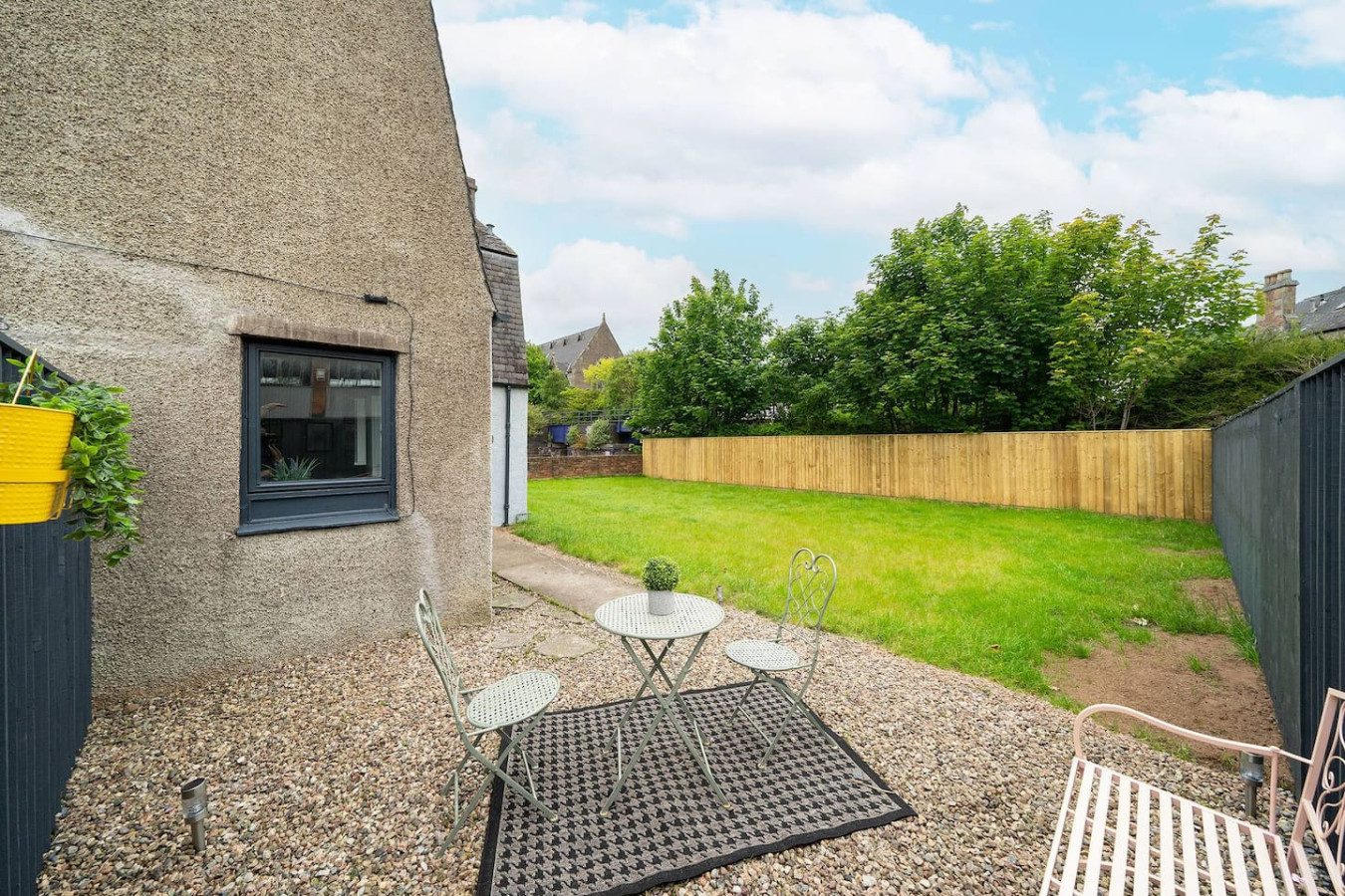 With eclectic style, loads of space and a winning location, The Palm at the Ferry has it all! This traditional semi-detached villa is situated right in the heart of the ever-popular seaside village of Broughty Ferry. In just a few minutes you can stroll down to the beautiful beach, wander to lunch or a drink at the fabulous local bars and cafes, or zip to the train station to explore further. It’s all on your doorstep with The Palm at the Ferry!Open the welcoming sage green door of this traditional semi-villa and you’ll step into a modern oasis. The large and bright open living space is decorated with tropical flair. The lush carpets, sumptuous green velvet sofa, palm leaf lamp shade and gold velvet armchair all invite you to chill out with a cocktail, or to kick back with a film on the large screen television. There’s even a full-size arcade machine where you can battle it out with your friends and family!The fully equipped modern kitchen is a beauty too, with glossy white cabinets, new appliances and a dining table that seats four. From here you can head outside to the large enclosed rear garden, with plenty of grass for kids to romp around, and a lovely seating area complete with table and chairs perfect for an al-fresco breakfast or an evening drink.Back inside, heading up the stairs you’ll find three full-sized double bedrooms – 2 with double beds, 1 with a bunk bed – all spacious with fun and glam touches of gold and bold colour. There’s also a spacious family bathroom with a shower over the bath, with fabulously quirky wallpaper. Key Features ● Excellent location in the heart of popular Broughty Ferry, just 4 miles from Dundee● 3 modern bedrooms – 2 x double, 1 with bunk beds● Bright, modern and spacious lounge with full size arcade machine● Dining table that seats 4● Spacious main bathroom with shower over bath● Fully-equipped modern kitchen● Large fully enclosed garden with outdoor seating● Complimentary on-street parkingLocationWith a plethora of excellent local cafes, shops and bars as well as a gorgeous golden beach, it’s easy to see why the seaside village of Broughty Ferry is so popular. It was home to millionaire barons during the height of Dundee’s jute industry, and it retains its high reputation as “The Jewel in Dundee’s Crown” today. You can soak up the history at Broughty Castle, which dates back to 1490, or simply enjoy a stroll on the beach.With excellent air, road and rail links, Broughty Ferry is a superb base for exploring Dundee and the delights of the Angus region. Take a hike in the hills of the Angus Glens or potter around historic villages like Kirriemuir, the birthplace of Peter Pan author Jm Barrie. Broughty Ferry is a great base for golfers too, with the famous courses at Carnoustie, Montrose and St Andrews all within an easy drive.If you want to go car-free, The Palm at the Ferry is just a four-minute walk to Broughty Ferry train station where you can catch a train into Dundee (only four miles away) and check out V&a Museum, Science Centre and loads of other attractions. You can also venture further afield by train to the bigger cities of Edinburgh, Glasgow or Aberdeen. Welcome to The Palm at the Ferry, enjoy your stay!We just wanted to give you a heads up; this cottage is quite near the train line. Previous guests have all advised this didn’t affect their stay at all but we believe it’s fair to mention this beforehand.