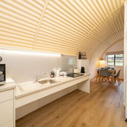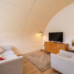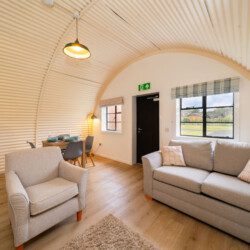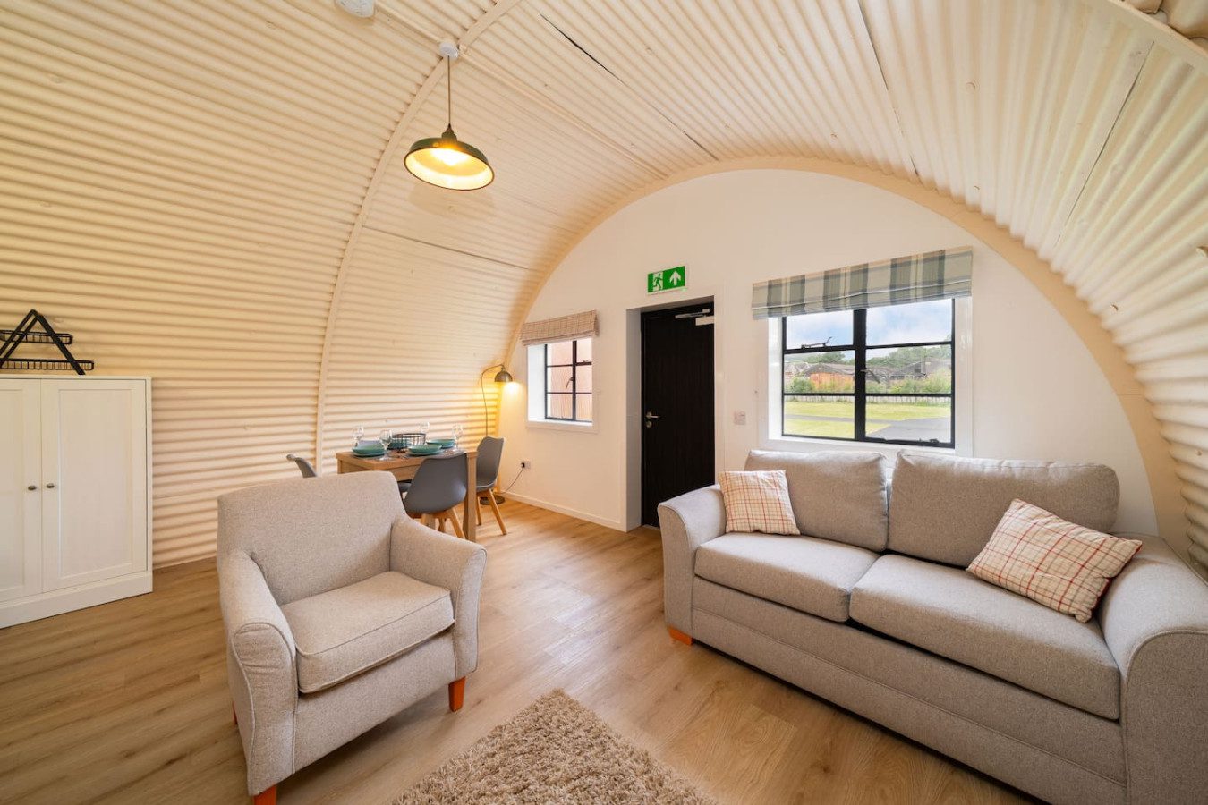 Every building tells a story and this one continues a legacy with inclusivity at its heart.Hut 38 is the newest addition to a collection of beautifully modernised and renovated Nissen huts at the historic Cultybraggan Camp, just a mile from the charming village of Comrie.Nissen huts like these were a familiar sight across Britain during World War Ii, used extensively in PoW camps.
