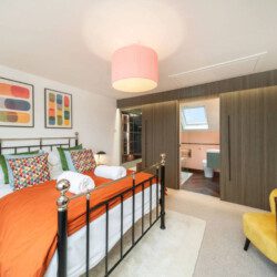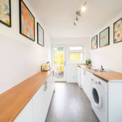 We’re delighted to present to you; Westland Shores! This is an idyllic holiday retreat, nestled in the picturesque coastal town of Crail, Scotland. Designed to cater to the needs of families, corporate travellers and tourists alike. Golf enthusiasts will find themselves within easy reach of Scotland’s renowned golf courses. Whether you’re seeking a peaceful retreat or an adventure-filled getaway, Westland Shores provides the perfect base for your exploration.Exciting news! There’s a newly renovated shower room and toilet upstairs in Westland Shores, not forgetting a brand new walk in wardrobe in the master bedroom! Previously the main bathroom was downstairs and separate Wc upstairs, however we listened to guest feedback and knew straight away that creating this space upstairs would be awesome. We’re excited for you to try it out!Designed to cater to the needs of families, corporate travellers, golf enthusiasts, and tourists alike. Families with dogs can enjoy the dog-friendly amenities and surrounding outdoor space. Corporate travellers can enjoy a comfortable and convenient stay, while golf enthusiasts will find themselves within easy reach of Scotland’s renowned golf courses and tourists can explore the beauty of the coast.Westland Shores itself is a haven of comfort and relaxation, with well-appointed rooms, cosy furnishings, and modern amenities. The eclectic feel of the interior is brought to life with stylish prints and bright colourful rooms; highlighting the owner’s eye for design and attention to detail, complimenting every single space. Each room is a pleasure to be in and with careful planning and coordination, the mid-century modern theme flows through the house offering a true home from home experience. Enjoy the fully equipped kitchen, spacious living areas, and private garden, providing the perfect setting for quality time with family and friends. The private driveway provides parking for a minimum of two cars, providing ease and convenience for guests with their own vehicles, combined with additional on-street parking where required. This coastal holiday home boasts three bedrooms including one double, one super-king (on the ground floor which can be split into a twin configuration upon request), and a small double. The tastefully decorated bedrooms ensure a restful night’s sleep, allowing you to wake up refreshed and ready for the day. There is a main bathroom downstairs, complete with a convenient walk-in shower and upstairs benefits from an additional walk-in shower room with Wc, not forgetting the new walk-in wardrobe in the main bedroom upstairs! Swoon. Stay connected and entertained with the provided broadband and Sky Tv with Netflix and various Apps, allowing you to relax and unwind after a day of activities. With ample space for your entire group, you’ll find the perfect blend of comfort and relaxation. The well-appointed kitchen ensures that all your culinary needs are met. Whether you prefer to whip up a quick breakfast or prepare a gourmet meal for your holiday companions you’ll find everything you need, from modern appliances to ample counter space. Enjoy the convenience and flexibility of self-catering during your stay. The private garden at Westland Shores is a true highlight, again done with tasteful design touches. It is a secure and spacious outdoor area, complete with seating where you can relax and soak up the sun all afternoon and into evening, with its south / west facing outlook. It’s the perfect spot for enjoying a morning coffee or dining al fresco at night with its decking area connecting the kitchen to the outside space. The garden gate opens onto the welcoming community park area to the rear, with a large open grass area for the family / pets to enjoy, which is currently maturing into a wild-flower meadow as part of the Community Park improvements.The garage can be used to store golf clubs, bikes, other outdoor activity equipment and the like with lockable doors.No matter what brings you to Westland Shores you’re sure to enjoy a home-away-from-home experience in this picturesque town and golfer’s paradise.Guest will be sent access instructions 24 hours before check-in.Just a heads up – our best piece of advice is to make sure you can easily access your digital guide link before and during your stay. This should have been sent to you via text and email 24 hours before check-in – if you’ve not received either, give us a holler! This will be your super duper manual throughout your entire stay. All relevant information (including how to operate household items e. g heating and ovens etc, wifi passwords, finding the hidden cutlery drawer and much more) will be included in this guide. It has lots of sections packed full of hints and tips, and a search bar at the top of the info tab that will allow you to find answers to your queries quickly and easily.If you have any questions please refer to the digital guide in the first instance for a prompt answer. If you still cannot find what you’re looking for, please contact us through Airbnb . Please note that our offices are open 9-5 weekdays and 10-3 weekends. Messages sent outside our operating hours are monitored at a reduced rate.Crail is a picturesque fishing village steeped in history and charm. Admire the traditional cottages with their colourful doors and flower-filled gardens, whilst discovering local artisan shops, galleries, and cafes. You will truly be immersed in the warm and welcoming atmosphere of this coastal gem. You’re close to the neighbouring towns of Anstruther (9 minute drive), Pittenweem (12 minute drive), St Andrews (16 minute drive), St Monans (17 minute drive) and Elie (21 minute drive).Crail is also a golfer’s paradise, with its close proximity to world-renowned golf courses. Tee off at the prestigious Crail Golfing Society, one of the oldest golf clubs in the world, or explore a range of nearby courses such as The Old Course in St Andrews, Ki