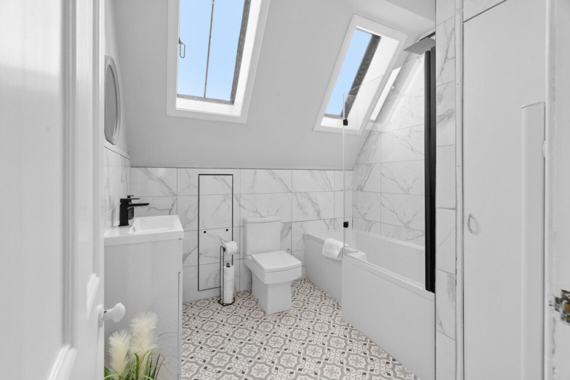 Featuring a spacious layout, modern amenities, and a welcoming ambiance, it provides a fantastic retreat to unwind after a busy day of work or exploring the local attractions. High ceilings and large windows fill the space with natural light, creating a bright and airy atmosphere, while carefully restored period features add a touch of elegance.