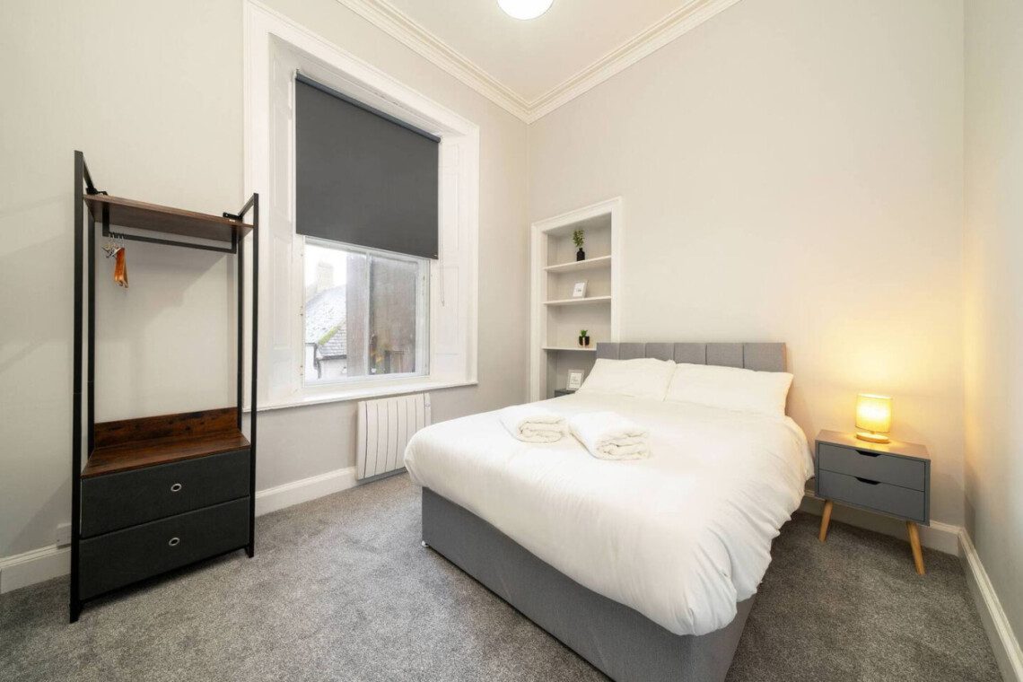 Ideal for contractor teams & work forces!Spacious 2-bed apartment designed for comfort during longer stays.Close to Local Work SitesJust a 5-10 minute walk from Montrose DocksCleaning Services AvailableFortnightly cleans can be arranged to suit your team’s schedule.Flexible Check-In and OutSelf-check-in and flexible timings to suit shift work or late arrivals.Discounts for Longer StaysPreferential rates available for bookings over four weeks – message for a tailored quote.The property features two double bedrooms, each furnished for comfort and practicality. The main bathroom includes a shower over the bath, catering to guests’ needs with both style and functionality.Situated within a charming block of four beautifully designed properties (book together for discounted rates), this apartment is an excellent choice for both business and leisure stays alike.Lochside Apartments, named after the former local distillery, is the ideal place to stay in the charming seaside town of Montrose. This newly refurbished two bedroom apartment offers a seamless blend of style and comfort, ideal for short or long term stays. Featuring a spacious layout, modern amenities, and a welcoming ambiance, it provides a fantastic retreat to unwind after a busy day of work or exploring the local attractions. High ceilings and large windows fill the space with natural light, creating a bright and airy atmosphere, while carefully restored period features add a touch of elegance. The living area offers ample space to relax or work, making it an excellent choice for those balancing business and leisure. A well-equipped kitchen, complete with modern appliances and plenty of storage, ensures guests have everything they need for their stay.Key FeaturesHigh ceilings & period features: adds character and charm to the living space.Spacious living areas: perfect for relaxation or remote working.Two double bedrooms: comfortable and versatile, suited for single or shared stays.Modern bathroom: includes a shower over the bath for convenience.Parking nearby: free parking for one car within close proximity to the property.