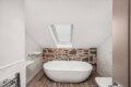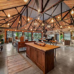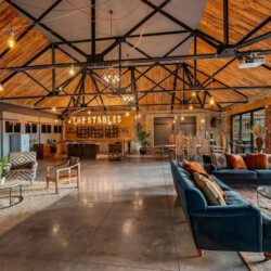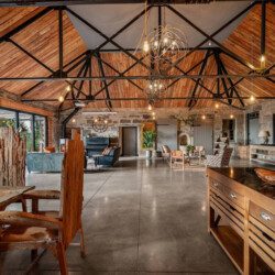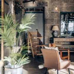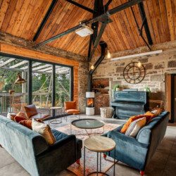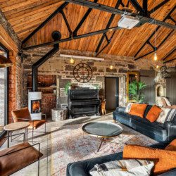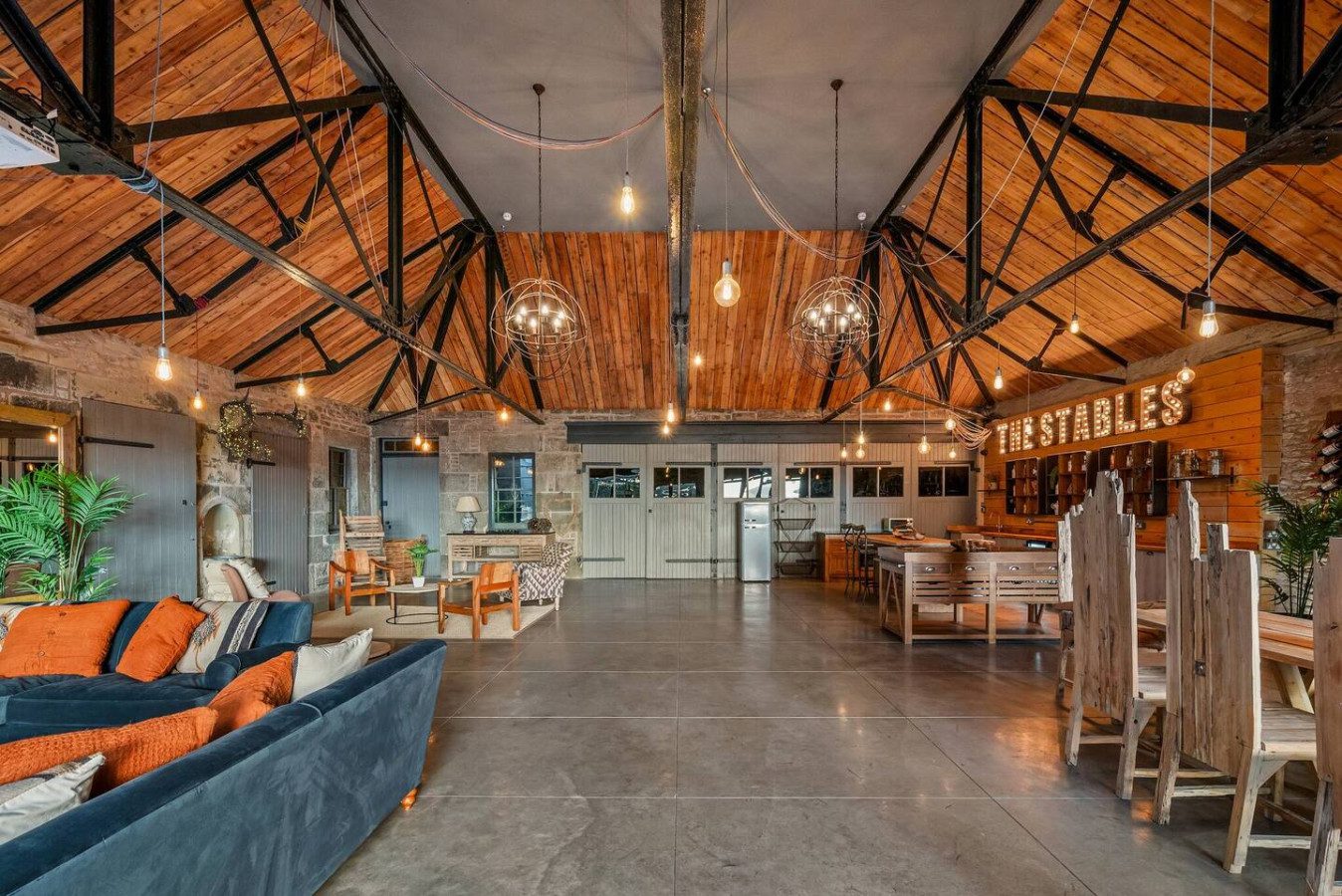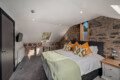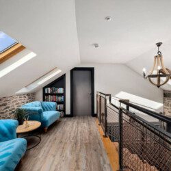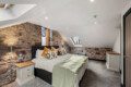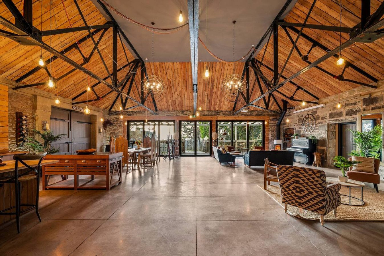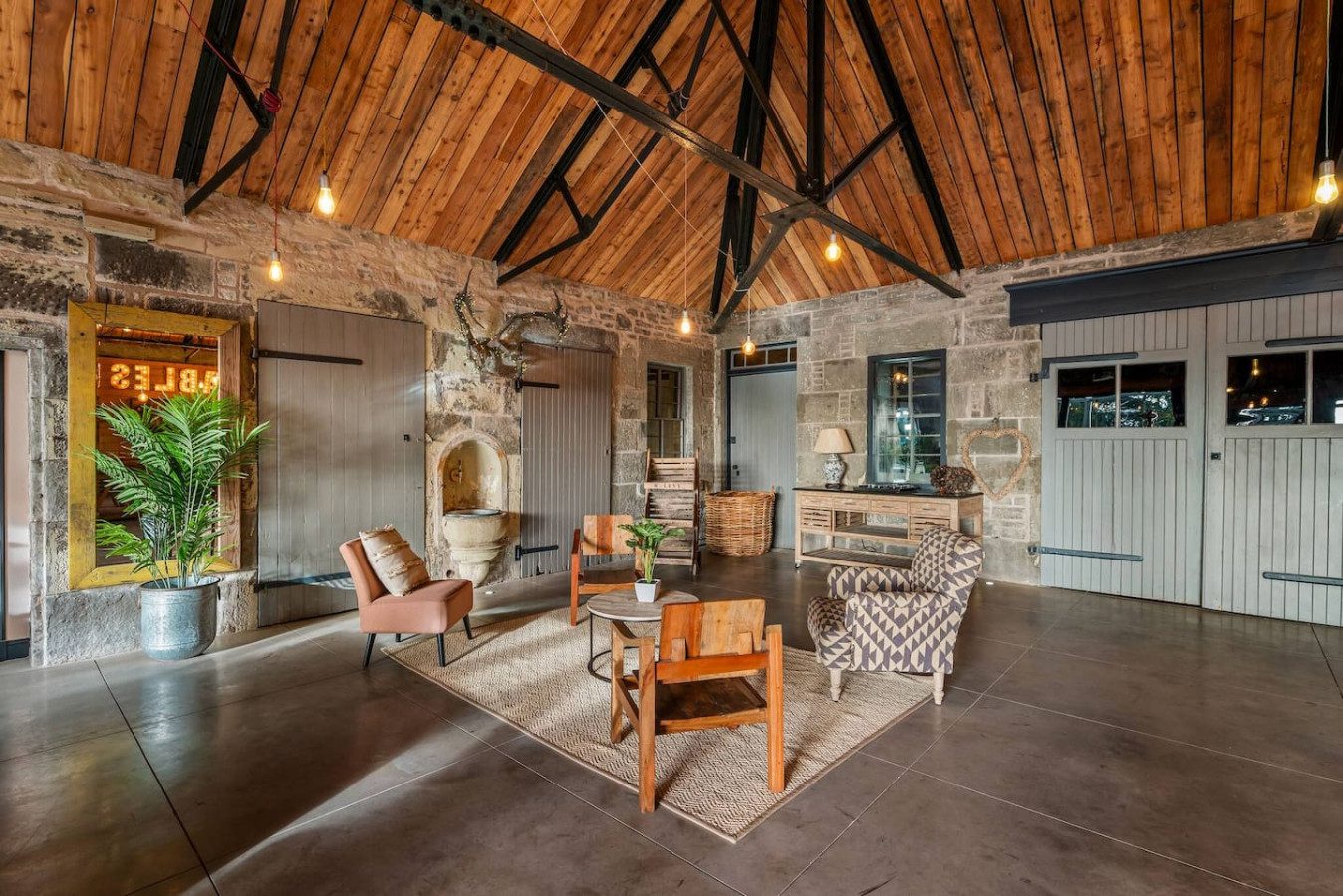 The heart of the home is a stunning open-plan living area that seamlessly blends style with functionality. The original stable features have been thoughtfully preserved and incorporated into the modern design, creating a unique atmosphere that combines old-world charm with contemporary comfort. High ceilings with exposed wooden beams and large, industrial-style windows allow natural light to flood the space, highlighting the tasteful decor and high-quality furnishings throughout.