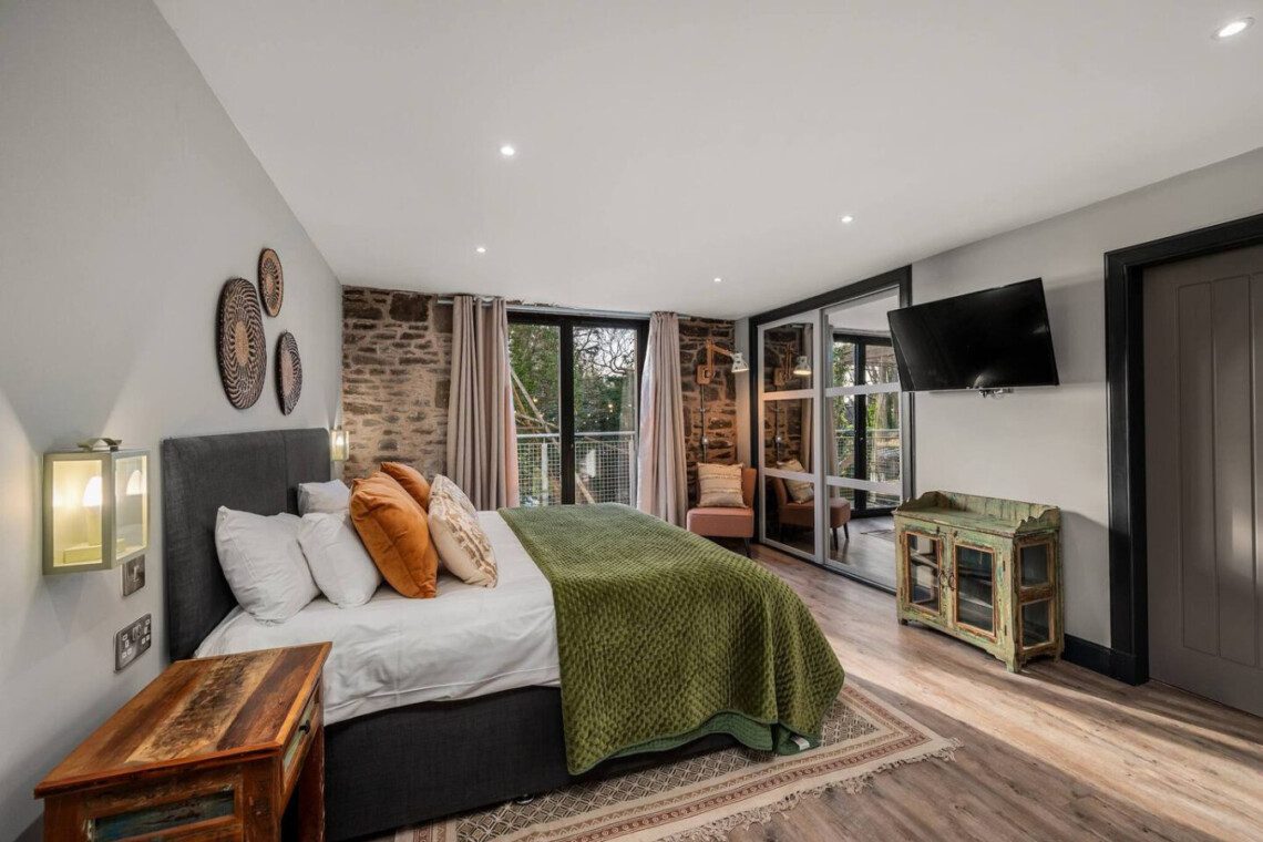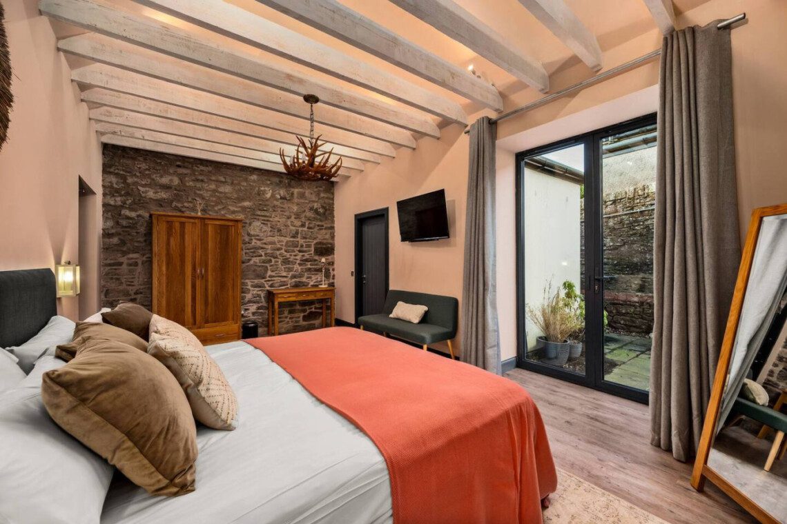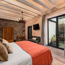 The space features four spacious bedrooms, each designed with comfort in mind. Every room is furnished with a super king-sized bed, ensuring a restful night’s sleep for all guests. For added flexibility, one of these rooms can be converted into twin beds, accommodating different sleeping arrangements to suit your group’s needs. This makes the property ideal for a variety of guests, whether you’re traveling with friends, family, or planning a friends or couple’s getaway.