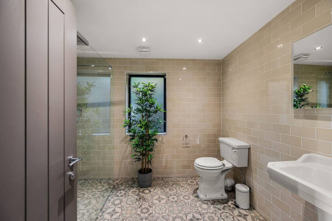 Each bedroom also comes with its own en-suite bathroom, providing added privacy and convenience. The two bedrooms located on the ground floor are equipped with walk-in showers. Both ground-floor rooms have access to either a private patio or the main outdoor area, ideal for your morning coffee. Upstairs, the two additional bedrooms offer an added luxurious experience, featuring both a bathtub for a relaxing soak and a separate shower.