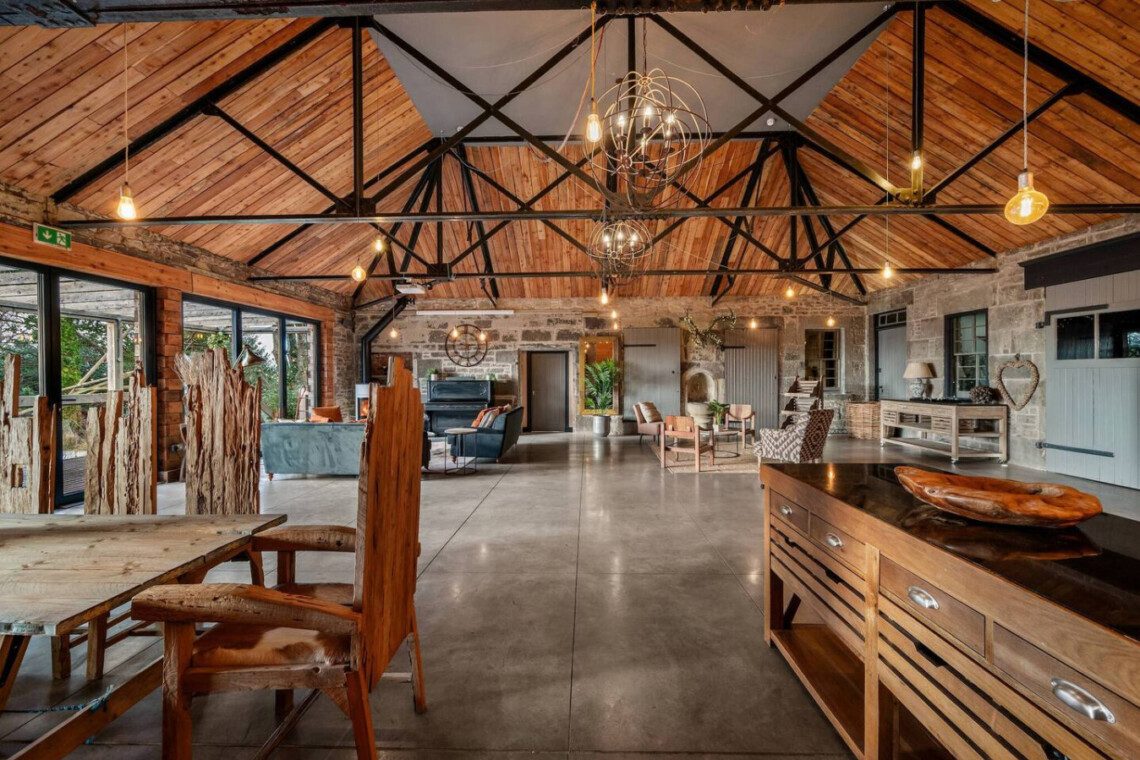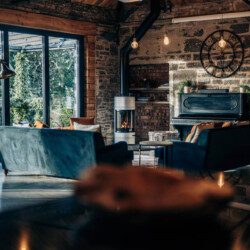 The living area is designed to be the ultimate place to relax and socialise. Sink into the plush sofas and armchairs around the cosy log burner, making it the perfect spot for a quiet night in with a good book or enjoying a movie night on the projector screen. The spacious layout offers plenty of room for everyone to spread out, whether you’re sharing a bottle of wine with friends, cooking up a storm in the kitchen to be enjoyed around the large dining table that comfortably seats eight, or enjoying some downtime with family. The thoughtful design ensures that this space is as functional as it is beautiful, with plenty of room to gather together or find a quiet corner to relax.