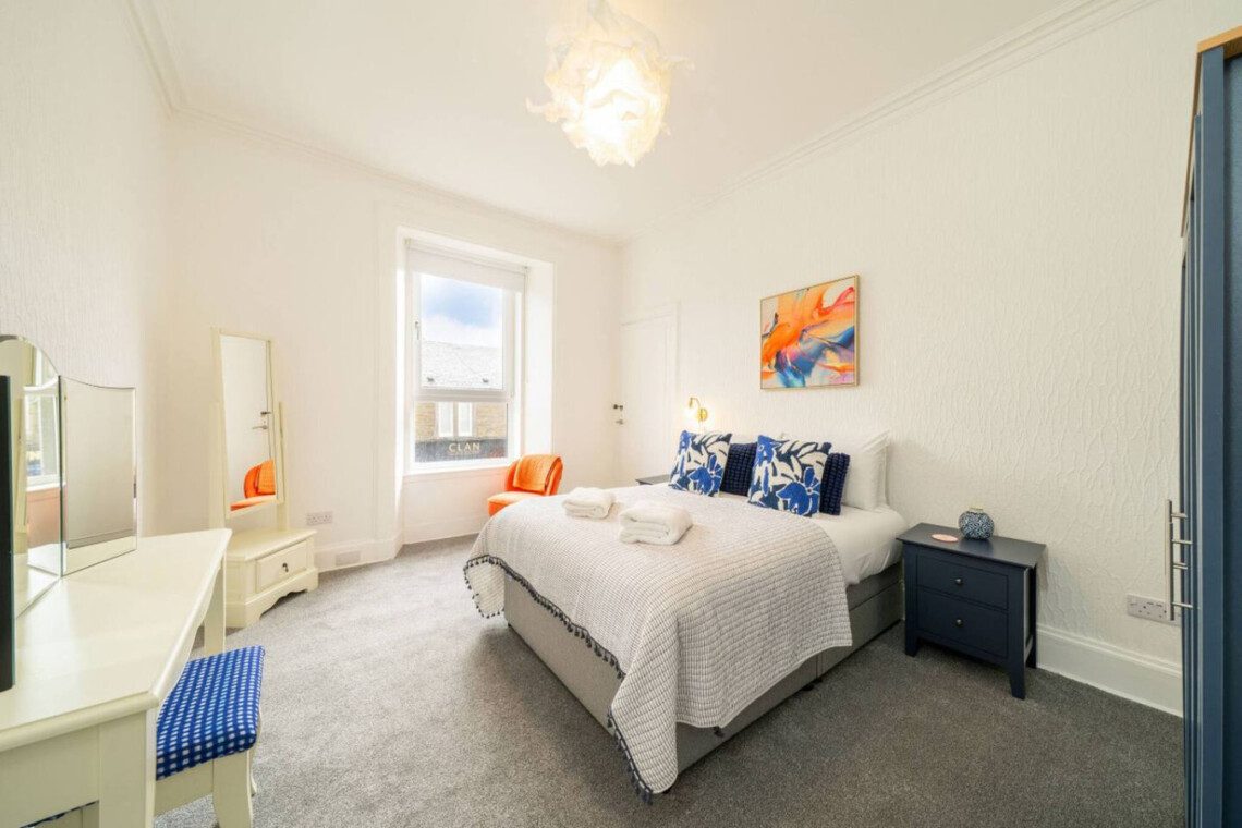 No. 69 Gray Street – a stylish retreat in the heart of Broughty Ferry. This beautifully appointed two-bedroom apartment offers high ceilings, a bright open-plan living space, and modern comforts. Just steps from vibrant bars, restaurants, and the scenic waterfront, it’s perfect for a seaside escape. Explore historic Broughty Castle, stroll the sandy beach, or venture to nearby Dundee and St Andrews.No. 69 Gray Street: stylish home in seaside town.