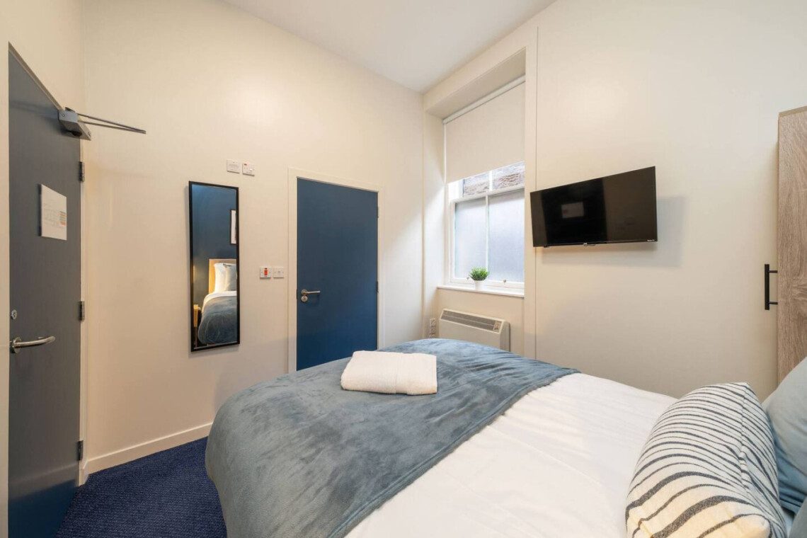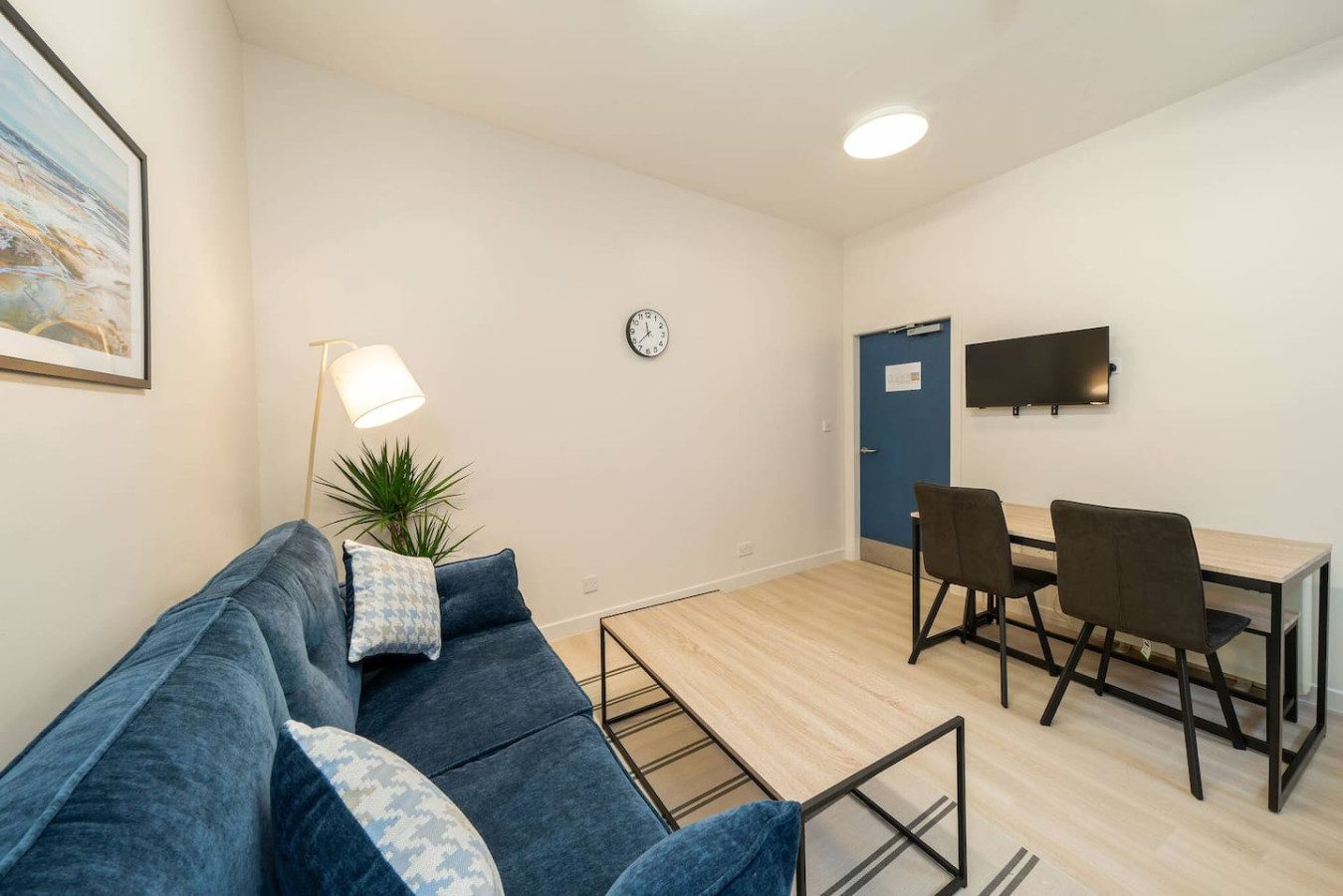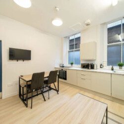 The thoughtfully designed open-plan living, dining, and kitchen areas offer a great space for socialising and relaxation, with plenty of room for social dining. The kitchens are equipped with modern appliances. The stylish decor, coupled with natural light pouring in through large windows, adds to the apartment’s inviting atmosphere, making it feel like a home away from home. All apartments will have access to a shared utility room on the ground floor where you’ll find a washing machine, tumble dryer and clothes airers. Free, on street parking is available on Baltic Street and the surrounding area.