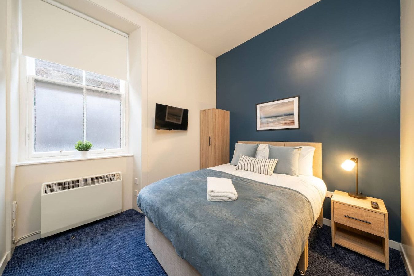 Just a 30 second stroll from the high street, Ben More Apartments provides convenience and flexibility. The building is home to four distinct apartments, each thoughtfully named after one of the beautiful Angus Glens: Clova, Isla, Esk and Lethnot. These include one four-bedroom apartment, one three-bedroom apartment, and two two-bedroom apartments, all designed to suit varying group sizes and travel needs. Each bedroom features a double bed and an ensuite shower room, ensuring privacy and convenience for every guest. The set up makes it easy to rent individual apartments for smaller parties or reserve multiple apartments to accommodate larger groups, offering a flexible, tailored solution.