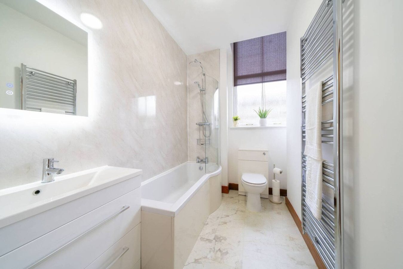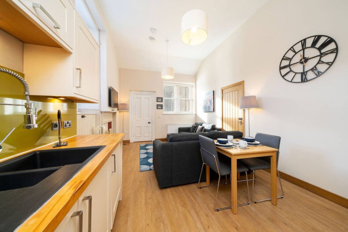 Welcome to Church House, an inviting retreat that combines charming exterior character with contemporary comforts inside. Nestled in a quiet area, this property provides an ideal base for a relaxing getaway, just a short stroll from the heart of Montrose. The open-plan living, kitchen and dining area is perfect for winding down after a day of exploration. The high ceilings give the space an airy, spacious feel, complemented by large windows that bring in natural light. The kitchen, equipped with modern appliances, makes preparing meals a breeze. Sleeping up to 3 guests, Church House offers two bedrooms: a main bedroom with a double bed and a second, smaller bedroom with a small double bed, ideal for a couple or small family. The family bathroom is designed with modern fixtures, offering a refreshing space to freshen up after a long day.Montrose, a historic coastal town on the North Sea, has been a significant hub since medieval times. Its strategic location between Dundee and Aberdeen meant it grew as an important port and trading post, and remnants of this history can still be seen throughout the town, from ancient buildings to restored shipyards. Staying here gives you a chance to experience the essence of a centuries-old town while enjoying the modern amenities of this carefully renovated home. Step through the gate into the cosy, private outdoor area, which is ideal for a morning coffee or an evening drink. This small garden space brings a touch of green to the property, surrounded by classic stonework, and provides a sense of seclusion from the bustling town.Montrose offers a range of activities for all interests. Start by exploring Montrose Basin, a tidal estuary that’s home to thousands of migratory birds, seals, and other wildlife. The Montrose Basin Visitor Centre provides fascinating exhibits about the local ecosystem, perfect for nature enthusiasts.For beach lovers, Montrose Beach stretches along the North Sea and is a popular spot for beach walks, kite-flying, and picnics. The beach is backed by scenic dunes and offers a tranquil setting for relaxing seaside days.History buffs can visit the Montrose Museum, which showcases the town’s heritage, including its maritime history, prehistoric artifacts, and fine art collections. Another must-see is the House of Dun, a Georgian country house just a short drive away. This grand estate offers beautiful gardens, trails, and an insight into Scotland’s aristocratic history.For those who enjoy golfing, Montrose Golf Links, one of the world’s oldest golf courses, offers both challenging play and spectacular coastal views.Food lovers will find a variety of local eateries and pubs in Montrose. Sample freshly caught seafood or traditional Scottish fare, and don’t miss the chance to try local delicacies like Arbroath smokies (smoked haddock) and traditional shortbread.Whether you’re here for relaxation or adventure, Church House is your perfect base. Experience the charm of a historic town, immerse yourself in natural beauty, and enjoy a comfortable stay in this thoughtfully designed space. We hope you’ll make lasting memories in this beautiful corner of Scotland.
