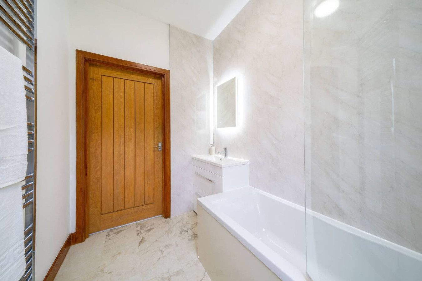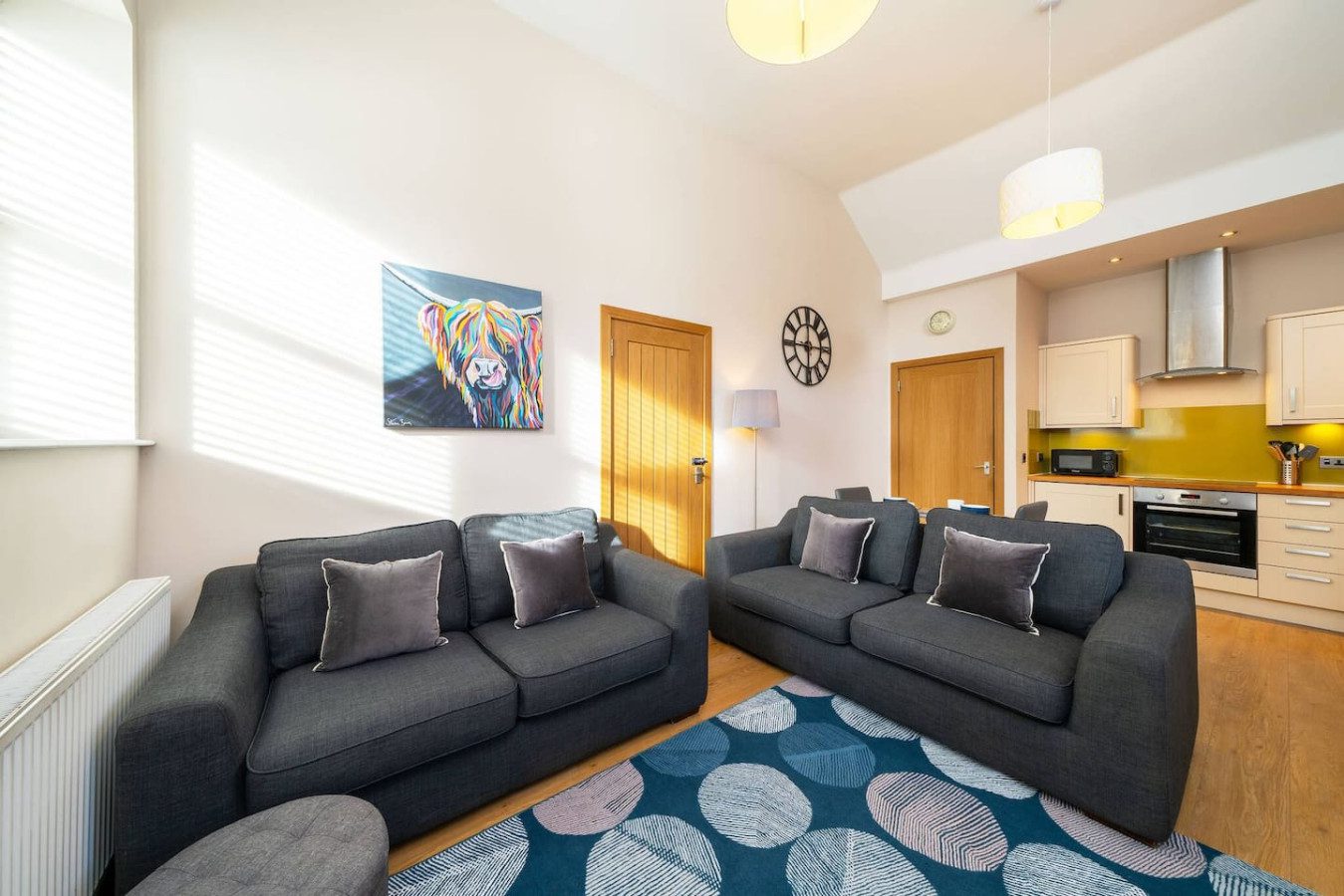 Welcome to Church House, an inviting retreat that combines charming exterior character with contemporary comforts inside. Nestled in a quiet area, this property provides an ideal base for a relaxing getaway, just a short stroll from the heart of Montrose. The open-plan living, kitchen and dining area is perfect for winding down after a day of exploration. The high ceilings give the space an airy, spacious feel, complemented by large windows that bring in natural light.